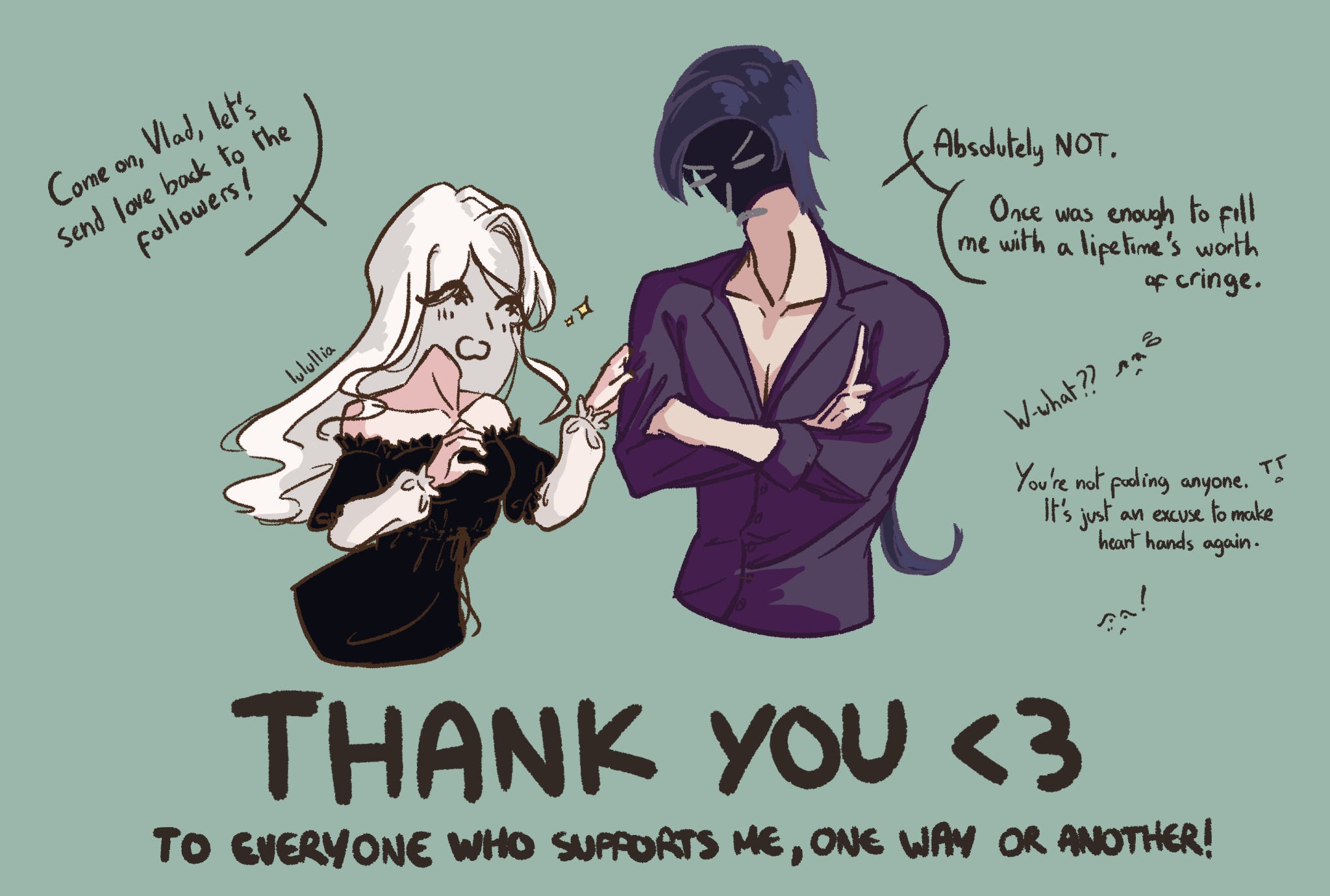 A few kind persons gave me a shout-out over on Game Jolt and a lot of new people came to follow my account – so I made a small thank you drawing <: